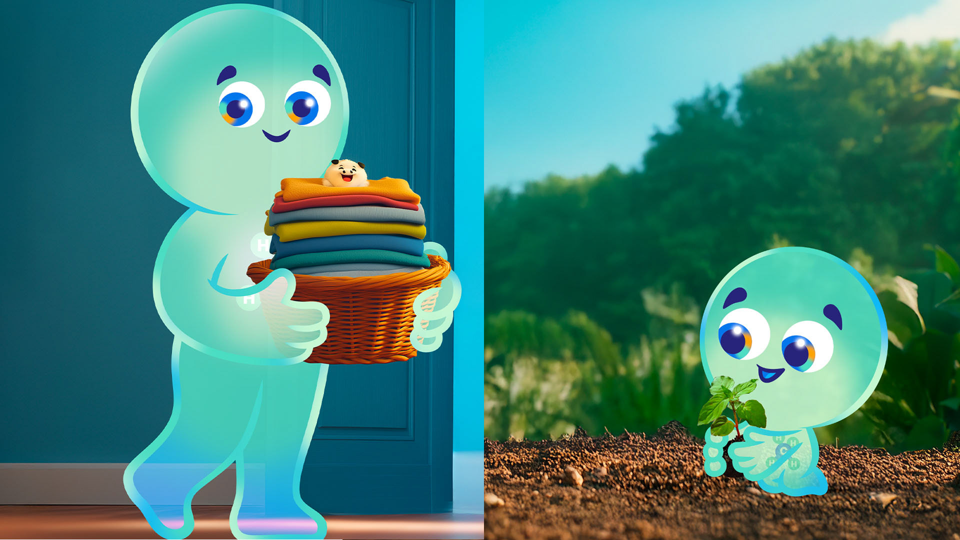 Como parte de la primera campaña, también creé una versión bebé del personaje, pensada para reforzar el mensaje de cuidado y suavidad, y ampliar las posibilidades narrativas dentro de la comunicación visual de la marca.