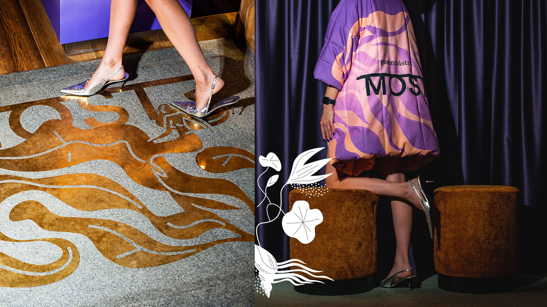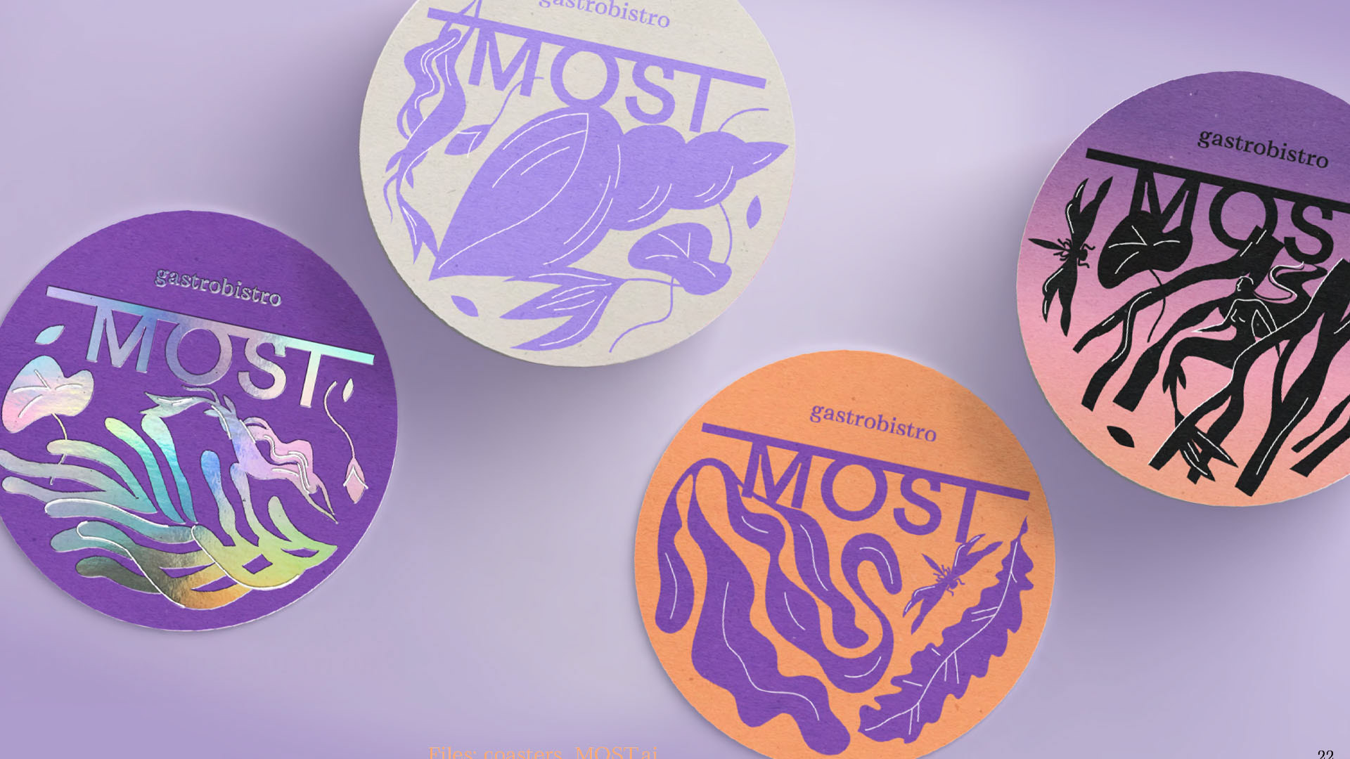 El restaurante se encuentra en la ribera de un río, por lo que el concepto principal de la identidad visual se basa en reflejar la conexión con la vida del río a través de elementos naturales como las hierbas acuáticas, las raíces y las líneas fluidas.