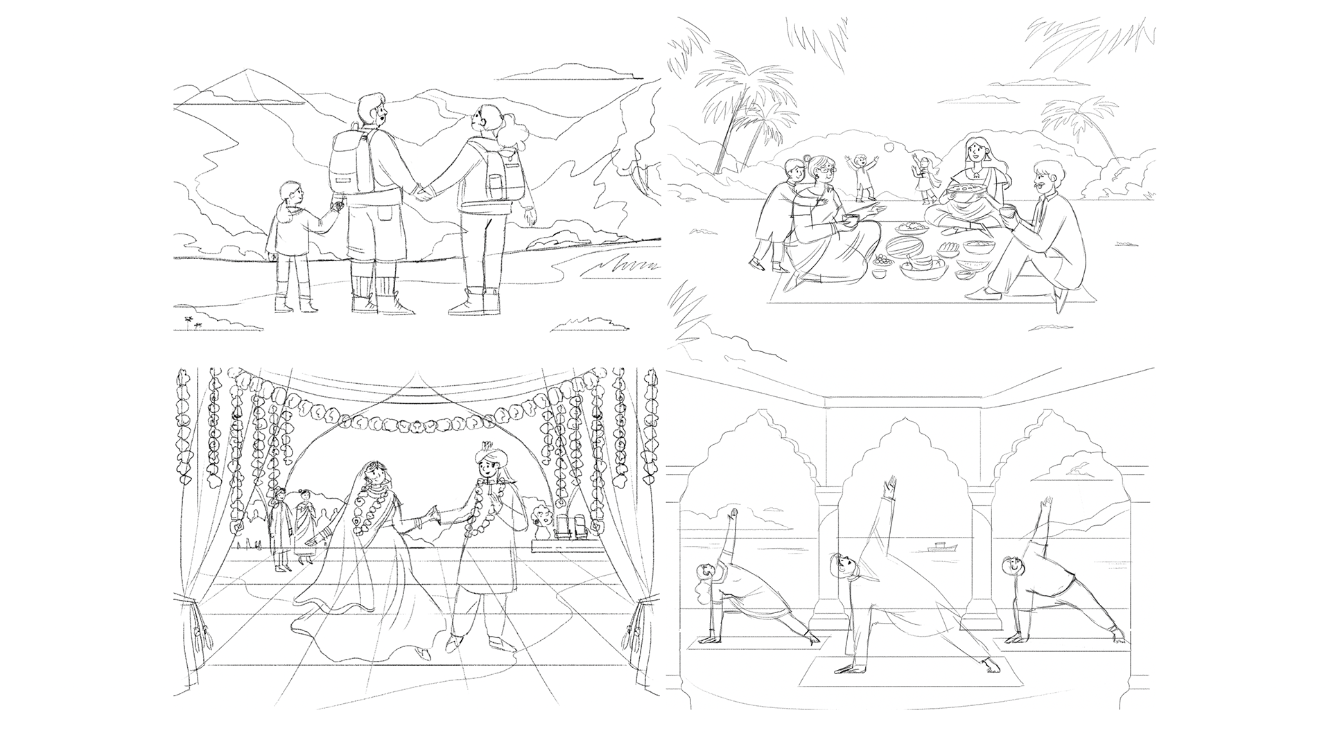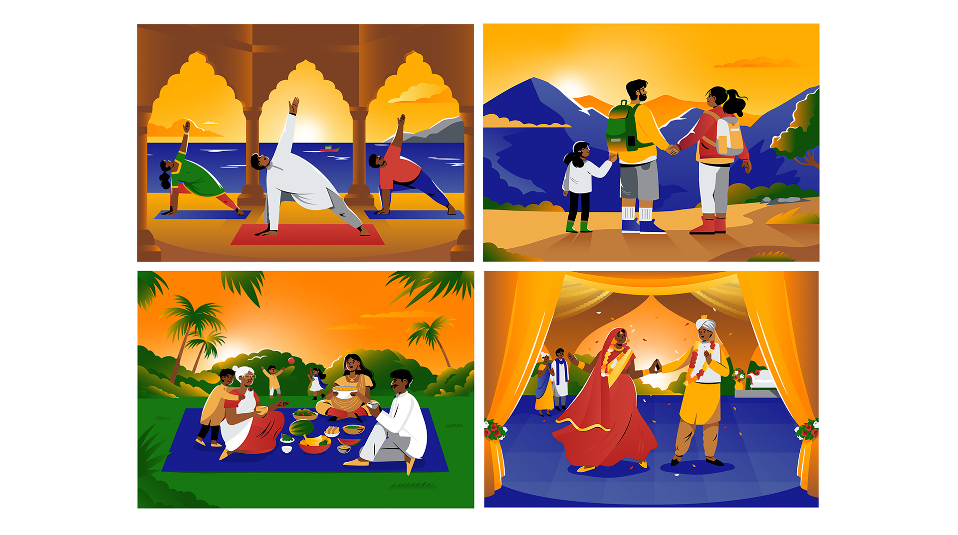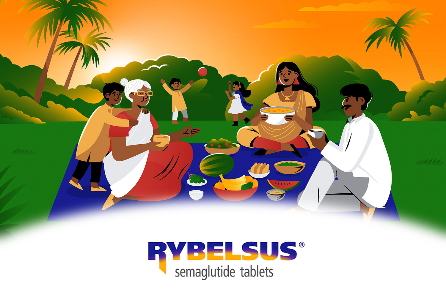Ilustraciones creadas para la campaña de Rybelsus en India, un medicamento que ayuda a las personas con diabetes a mantener una vida plena y digna.
